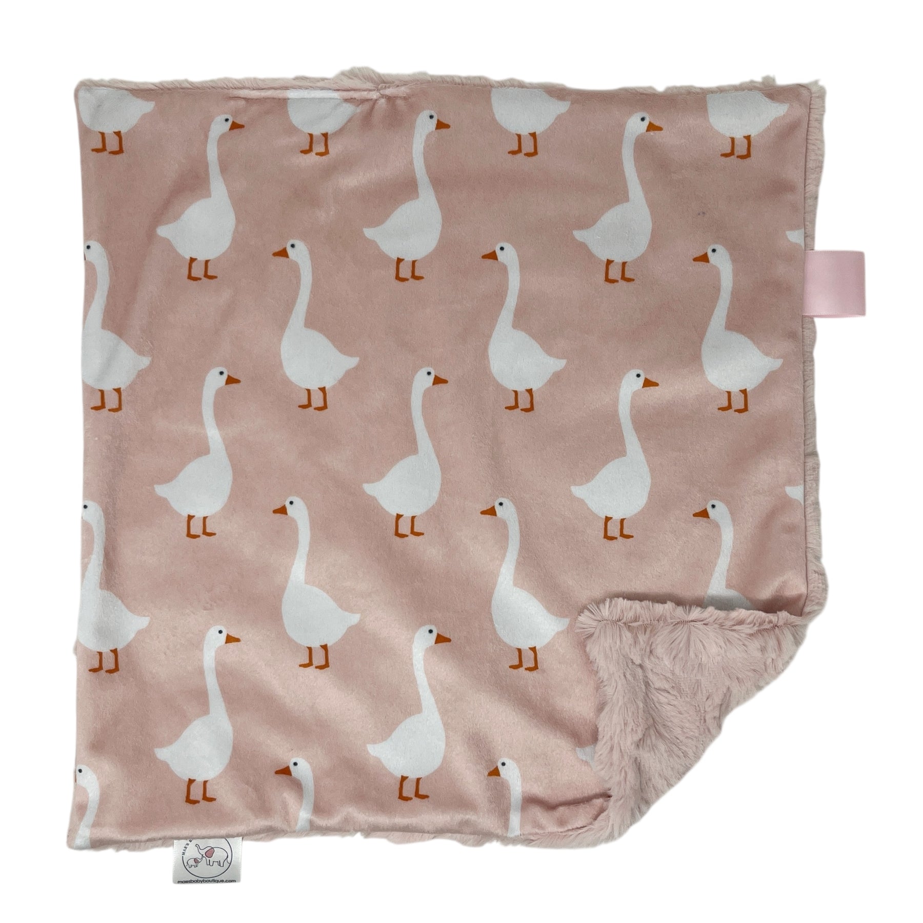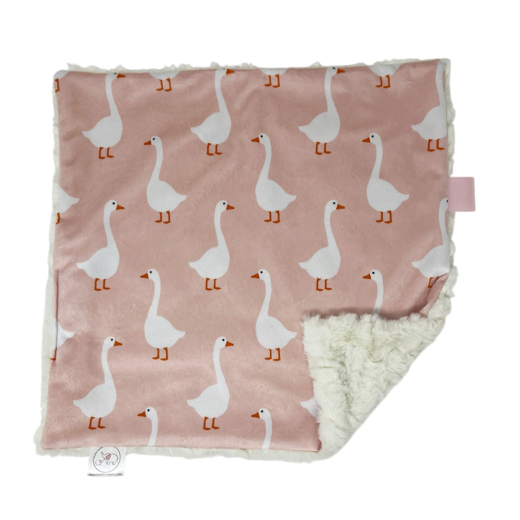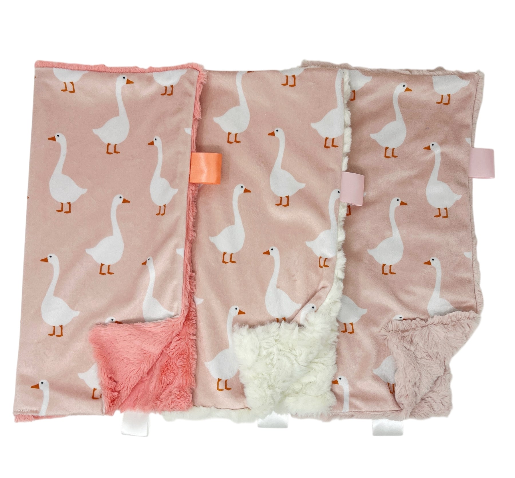 Luxe lovey blanket is just the perfect size for little ones to carry and snuggle providing a sense of security.  Each lovey has a coordinating satin loop to add another touch of sensory awareness that little ones often find soothing.