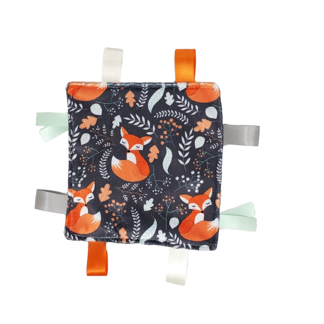 Mini sensory toys are loveable and velvety soft!  Babies and toddlers love to the snuggle of minky fabric and soothing ribbons.  They are perfectly sized for babies to hold and toddlers to carry!  Easily carry them in the diaper bag or purse to have on hand!