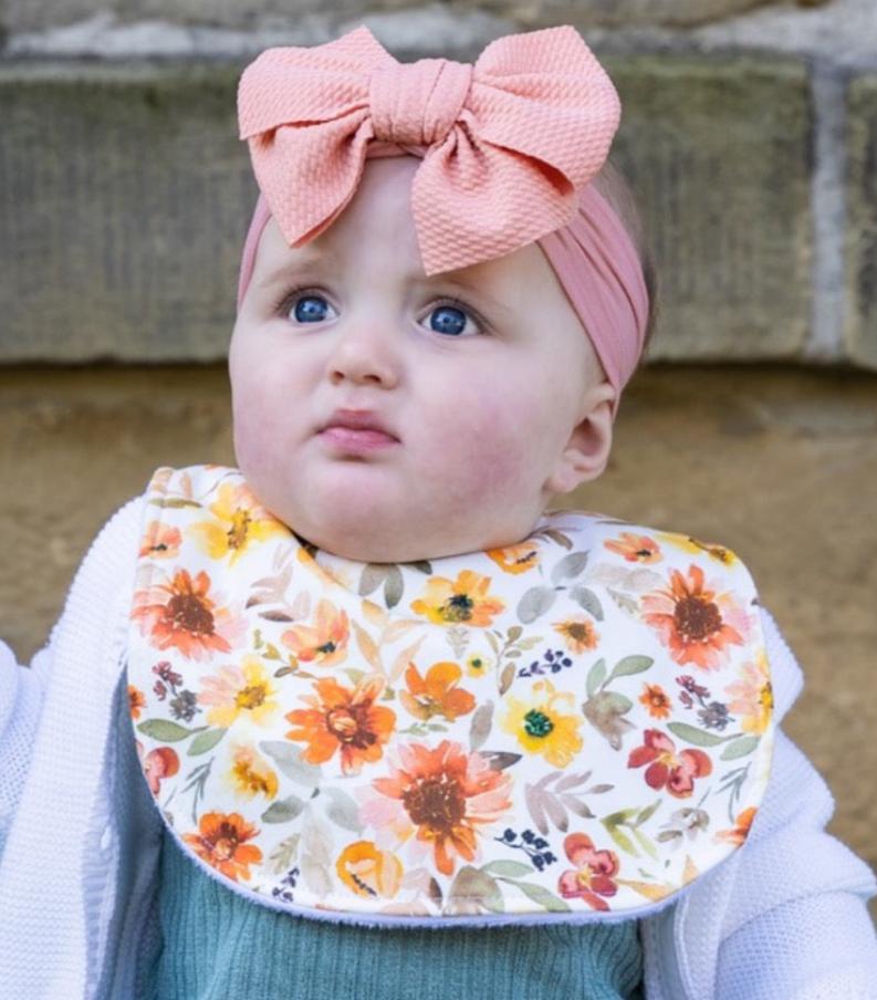 Traditional style bibs are available in fun and trendy patterns and just the right size to keep your little one clean from bottle feedings to toddler years!  Made from the softest organic cotton with a soft polyester minky backing.  Multiple plastic snaps allow bib to fit from infant to toddler.